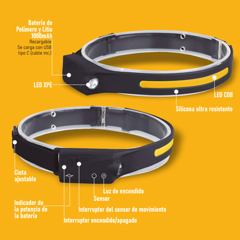 LINTERNA CABEZA RECARGABLE 3W C/SENSOR 1 COB+XPE BRIXO