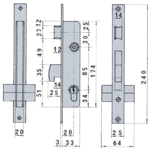 - Cerradura con frente niquelado y palanca de gancho, picaporte reversible. Incluye cilindro Tradicional C0.Leva 13,25 mm