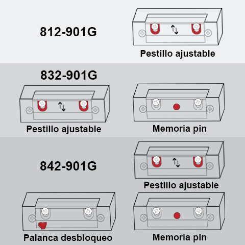 - Para apertura de puertas mediante sistema eléctrico 6-12V, con bloqueo y desbloqueo