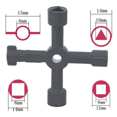 - Llave en cruz 4 en 1, en acero mplatificado ideal para tapas de contadores, grifos exteriores radiadores , etc... 2 formas cuadradas 1 triangular y 1 clave