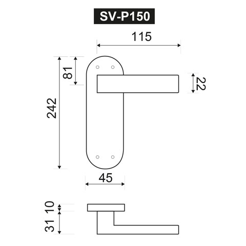 - Manivela con placa de diseño clásico actual pensada para puertas de paso - Placa de líneas rectas con extremos redondeados de 242x45 mm.