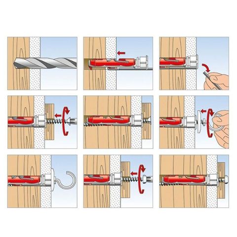 - Taco basculante de nylon de fácil instalación para cargas altas en cartón yeso