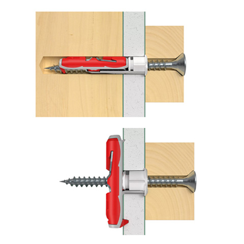 - En aplicaciones en placas, detrás de las cuales hay un hueco, se utiliza el DuoTec como un taco vuelco