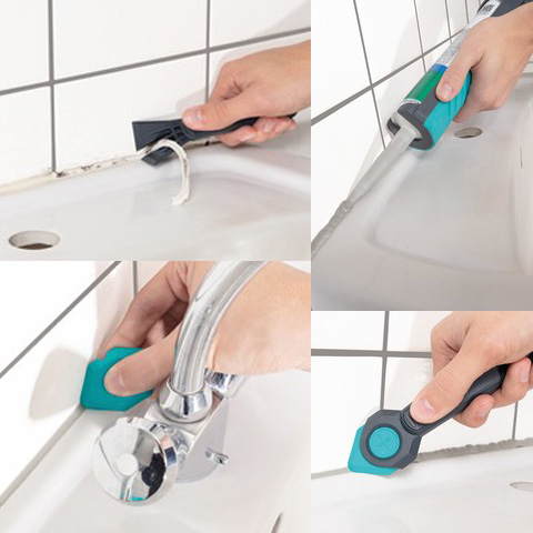 - Juego Renovación de juntas 4 piezas - Consta de rascador de juntas, 1 perfilador de juntas con perfiles angulares de 45º (5 y 10 mm), 1 perfilador de juntas con perfiles redondos (radio de 6 y 8 mm) y soporte correspondiente - Ergonómico, fácil de limpiar, para un rascado eficaz y una retirada limpia de las juntas.