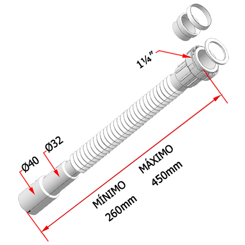 - Medidas: 1 1/4 x diámetro 32-40 - Mínimo 260 mm. máximo 450 mm.