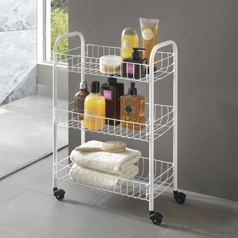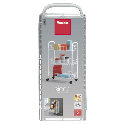 - Con 4 ruedas dobles Sistema de montaje express (3 minutos) Medidas: 41x23x63 cm. Alambre plastificado LDPE color blanco.