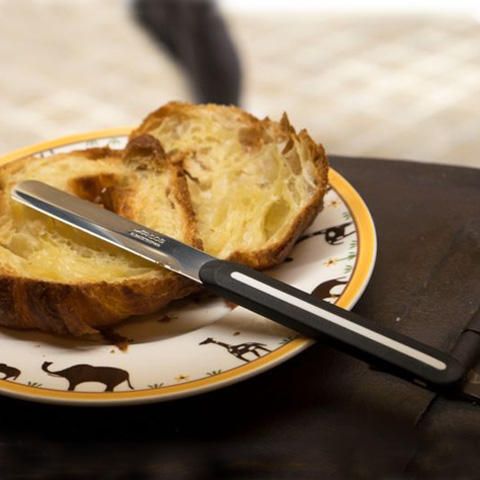 - Presenta un diseño elegante y atractivo - Sus funciones principales son la de untar y cortar - Hoja en curva en acero inoxidable tecnología NITRUM que no requiere afilado - Puede introducirse en el lavavajillas - Mango de polipropileno a doble inyección para mayor resistencia a las altas temperaturas, la corrosión y los golpes.