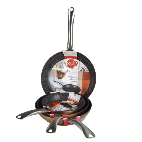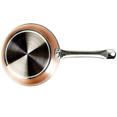 - Sarten de aluminio forjado 2.8mm espesor. Antiadherente interior 2 capas acabado tipo piedra, ecologico, libre en PFOA.Exterior en silicona color cobre, muy resistente a altas temperaturas y abrasiones. Base de induccion completa, apta para todo tipo de cocinas incluida la induccion. Apta para horno Mango de acero remachado por tres puntos a la sarten, muy resistente y no transmite el calor.