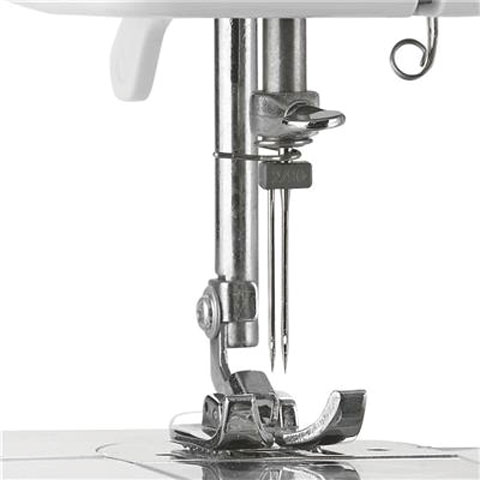 - El funcionamiento es muy simple, por lo que resulta muy adecuada para principiantes. Con el selector giratorio escoja uno de los 10 patrones incorporados que le permiten coser fácilmente recto o en zigzag. Con el sistema de enhebrado fácil, enhebrar la máquina será tan sencillo que podrá empezar a coser inmediatamente. Fácil de bobinar con la función de rebobinado. Con la aguja doble puede coser dos puntadas una al lado de la otra, por lo que no deberá coser dos veces. La máquina también tiene un botón fácil de usar para coser hacia atrás.