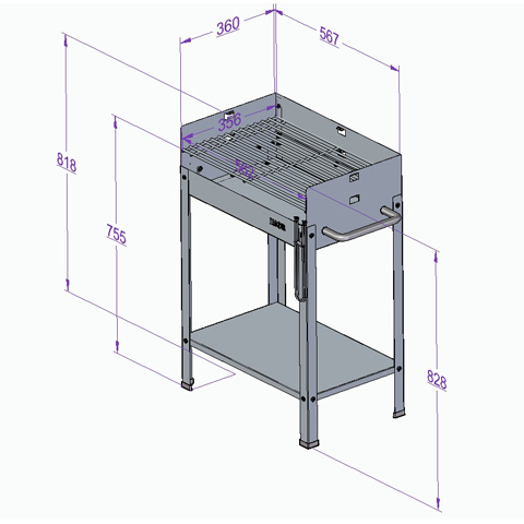 - Solo puede usarse con carbón vegetal - Parrilla asadora cromada regulable en 2 alturas - 2 asas para manipular la parrilla asadora - Superficie de asado 2085 cm2 - Tiradores cromados laterales para el transporte - Bandeja inferior para colocar utensilios - Patas y bandeja inferior de chapa galvanizada.