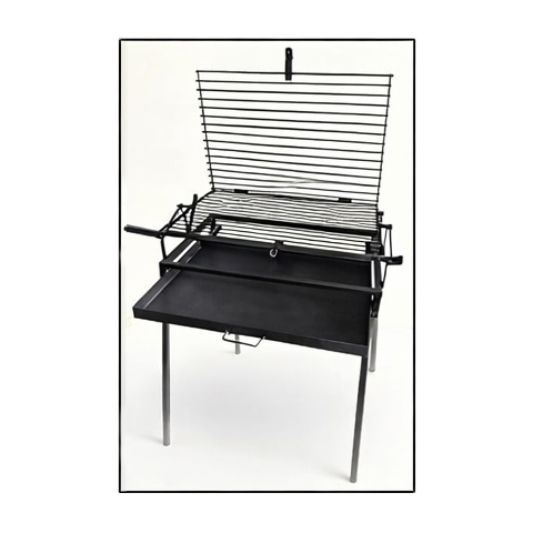 - Muy robusta - Mecanismo de vuelta y vuelta - Cajón de brasas extraíble - Retirando cajón y patas se puede utilizar en la chimenea de leña
