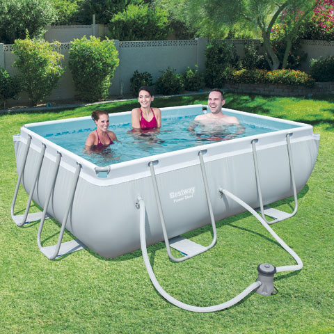 - Estructura de tubos de metal ensamblados unos con otros aportando más rigidez y pintados para ser más resistentes al óxido. Liner compuesto por 3 capas de PVC y Poliester de gran resistencia y durabilidad. Capacidad 3.662 Litros - Dispensador ChemConnect que mantiene el agua limpia y saludable, ya que proporciona un nivel estable de cloro que se distribuye de manera uniforme por toda la piscina. - Contenido: 1 piscina, 1 bomba de filtrado (compatible con cartucho de filtro tipo I), 1 dispensador ChemConnect.