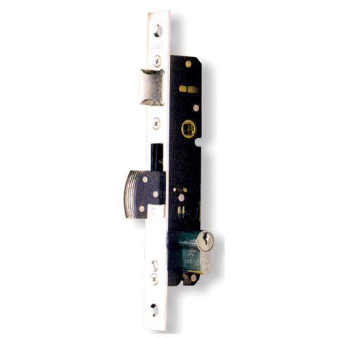 - Cerradura con frente niquelado y palanca de gancho, picaporte reversible. Incluye cilindro Tradicional C0.Leva 13,25 mm