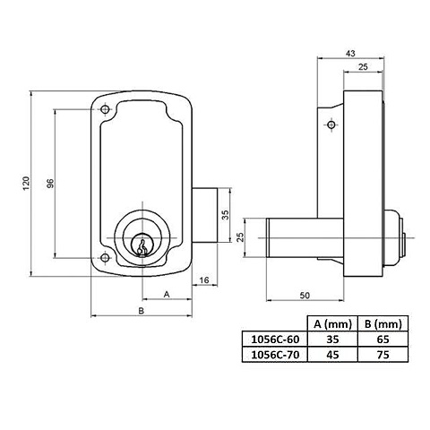 - Cerradura con cilindro ambos lados - Cerradura solo con palanca - Palanca accionada con llave por ambos lados. Palanca a una vuelta - Acabado en Hierro Esmaltado Alta Resistencia - Tamaño bombillo 50 mm