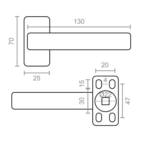 - Juego para 1 puerta - Incluye cuadradillo de 8 mm. y tornillos.