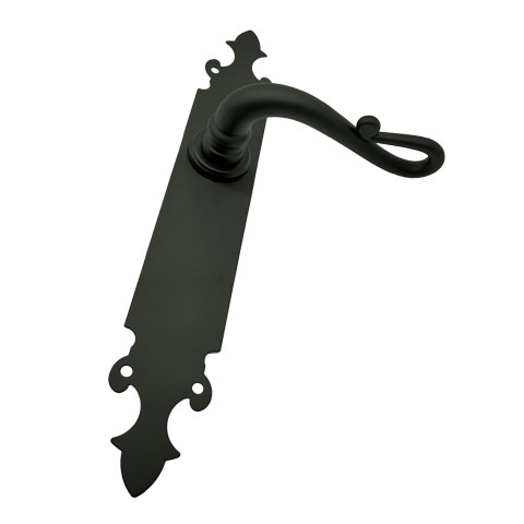 - Manivela con placa de diseño rústico pensada para puertas de paso - Placa de líneas ornamentales con extremos decorativos de 275x44 mm. - Acabado en negro rústico