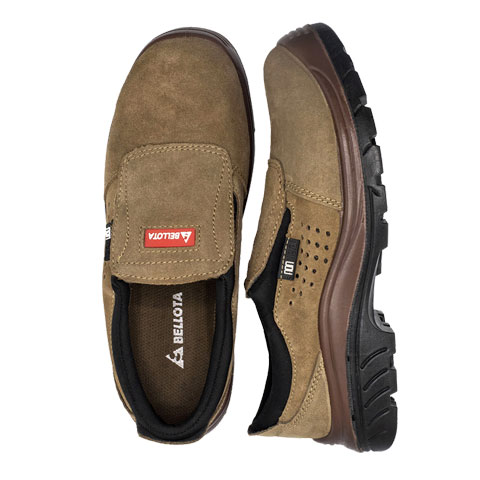 - Con plantilla antiperforación textil y puntera de composite en piel serraje marrón
