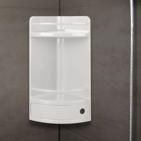 - Estante rinconero con cajón, práctico y resistente. Perfecto diseño para la ducha, optimiza espacio. Fácil mantenimiento. Soporta hasta 6 kgs.Cajón sin pomos, varillas protectoras. Higiénico y de fácil limpieza Tamaño: 20x20x50 cm