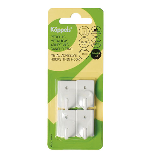 COLGADOR ADHESIVO PLAST 18X26MM FINO BLANCO (BL 4UD) P2003B KOPPELS
