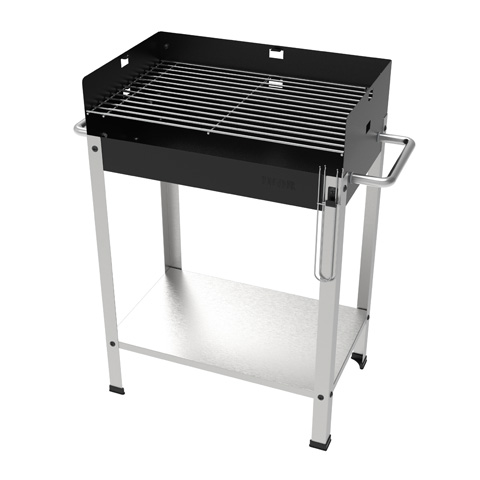 - Solo puede usarse con carbón vegetal - Parrilla asadora cromada regulable en 2 alturas - 2 asas para manipular la parrilla asadora - Superficie de asado 2085 cm2 - Tiradores cromados laterales para el transporte - Bandeja inferior para colocar utensilios - Patas y bandeja inferior de chapa galvanizada.
