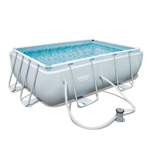 - Estructura de tubos de metal ensamblados unos con otros aportando más rigidez y pintados para ser más resistentes al óxido. Liner compuesto por 3 capas de PVC y Poliester de gran resistencia y durabilidad. Capacidad 3.662 Litros - Dispensador ChemConnect que mantiene el agua limpia y saludable, ya que proporciona un nivel estable de cloro que se distribuye de manera uniforme por toda la piscina. - Contenido: 1 piscina, 1 bomba de filtrado (compatible con cartucho de filtro tipo I), 1 dispensador ChemConnect.