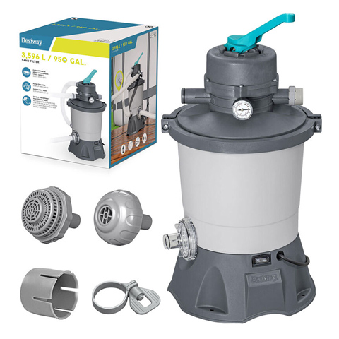 - Capacidad de filtración: 3596 l/h - Ideal para piscinas con una capacidad de entre 1.100 y 18.100 litros - Utiliza arena de sílice para la filtración, lo que reduce la necesidad de cambiar filtros constantemente - Diámetro del recipiente de filtración: 27,4 cm.